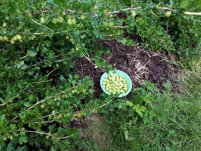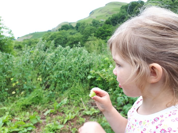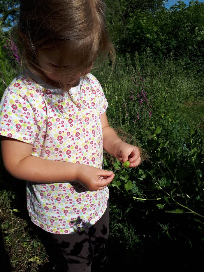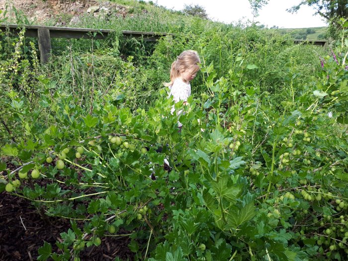 Grandad took full advantage of the free and willing labour so we set about collecting gooseberries. We learnt that they are prickly.