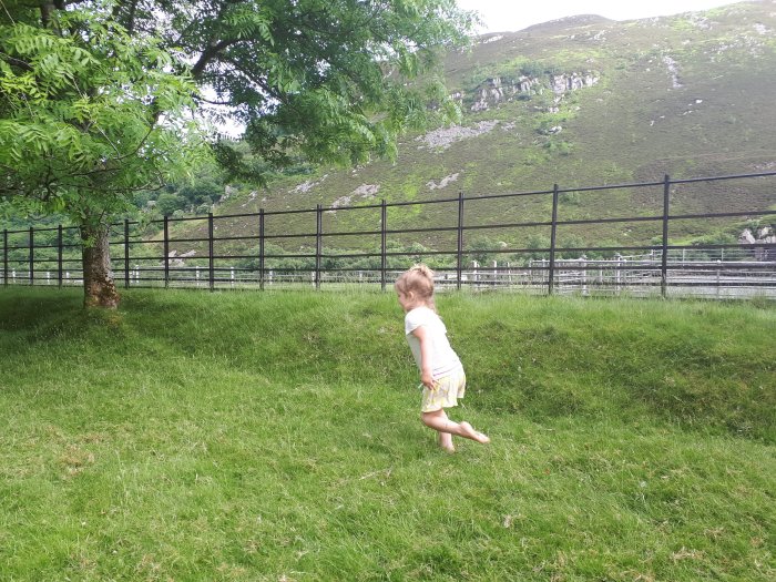 There is a path down the steep valley to the river at the bottom. We sent Daddy for a look, there are ALOT of steps. However there is a pub at the bottom and a riverside path back to Forest Holidays if you’re after a circular walk; it is a longer route so check a map beforehand.
