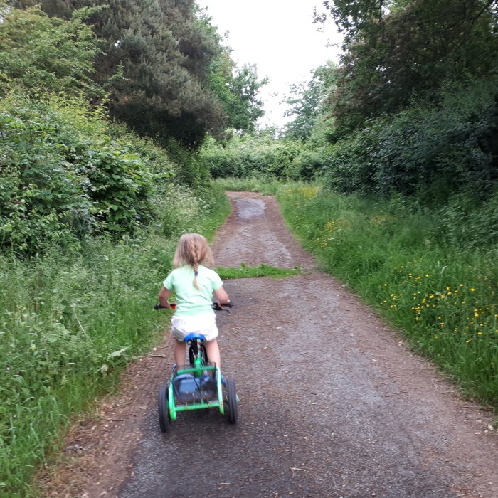 The next downhill section was quite muddy. If it’s been wet you’ll need some muscle and determination with an off-road pushchair (especially on the way back).