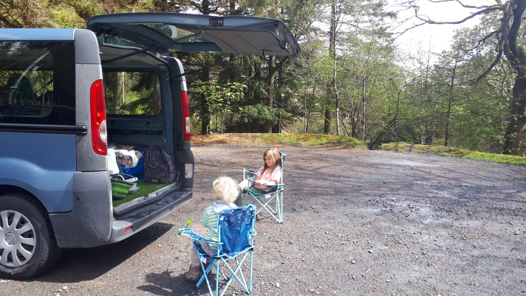 There are not any specific parking places along the road however there are passing places. We picked a large passing place and made sure that we left enough room for other vehicles to still be able to use it if needed.