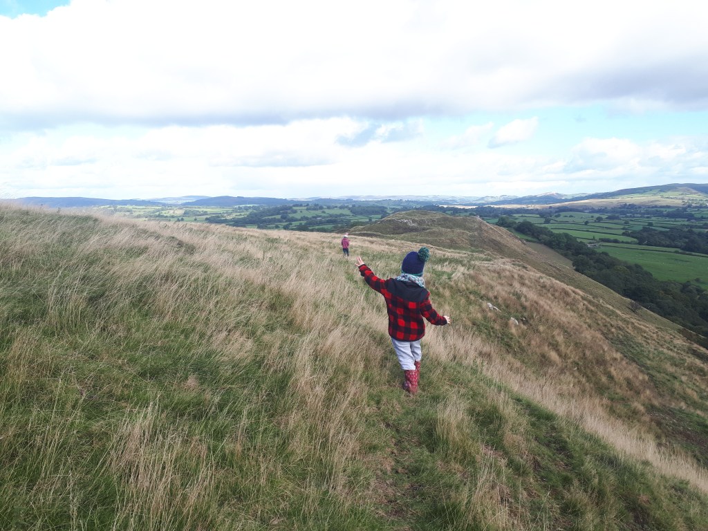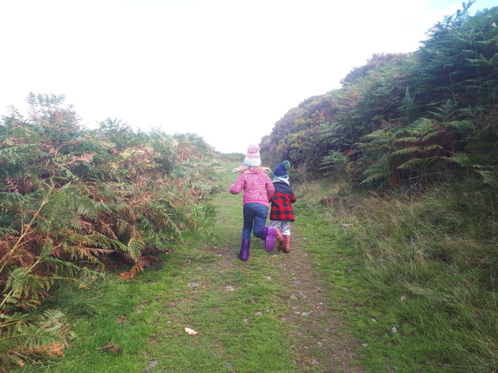 Pen Dinas is an imposing Iron Age hill fort overlooking Tanybwlch and further on, Aberystwyth. This short but steep climb that is well worth it for the staggering 360 degree views and knowing you can dip your toes in the sea afterwards (if you’re feeling brave!). This route isn’t suitable for wheels and the smallest of legs might need a carry up the steepest parts but will have no trouble running all the way down.