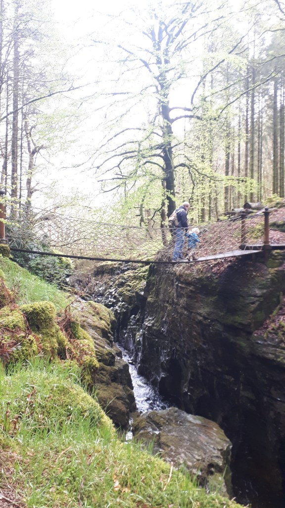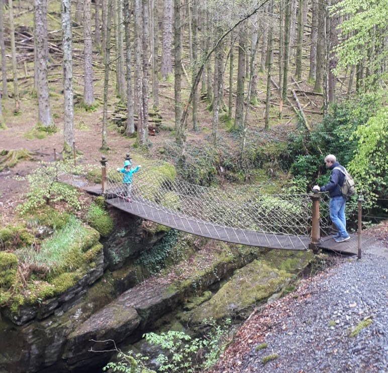 Bridge two is Chain Bridge which is not for the faint hearted (me!) It does shake, it shakes more with dogs… but the view into the Ystwyth Gorge is amazing.