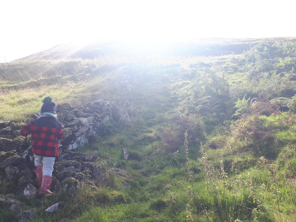 There is a worn path just here that goes directly up the hill to the castle at the top. It is very steep! We have climbed this before but wouldn’t necessarily recommend for little legs, or even bigger ones… it also gets very overgrown with bracken at certain times of year. But if you’re after a challenge then head on up.