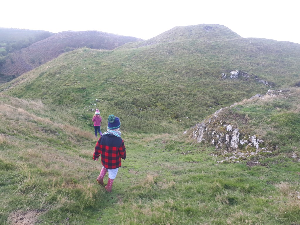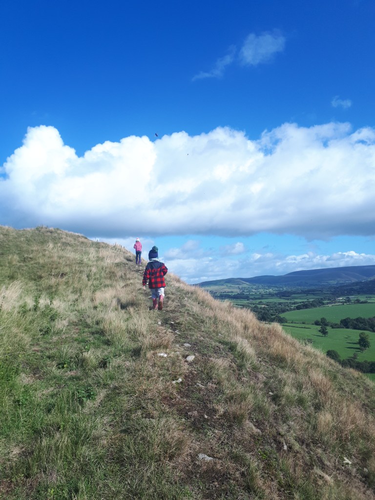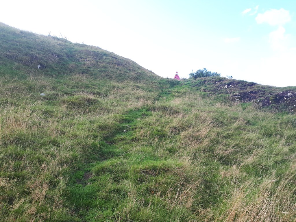 …where the hill opens up for full exploring. As this is open access common land you are free to wander around the top of the hill and explore the castle earthworks as you wish. We did a big circle around the top.