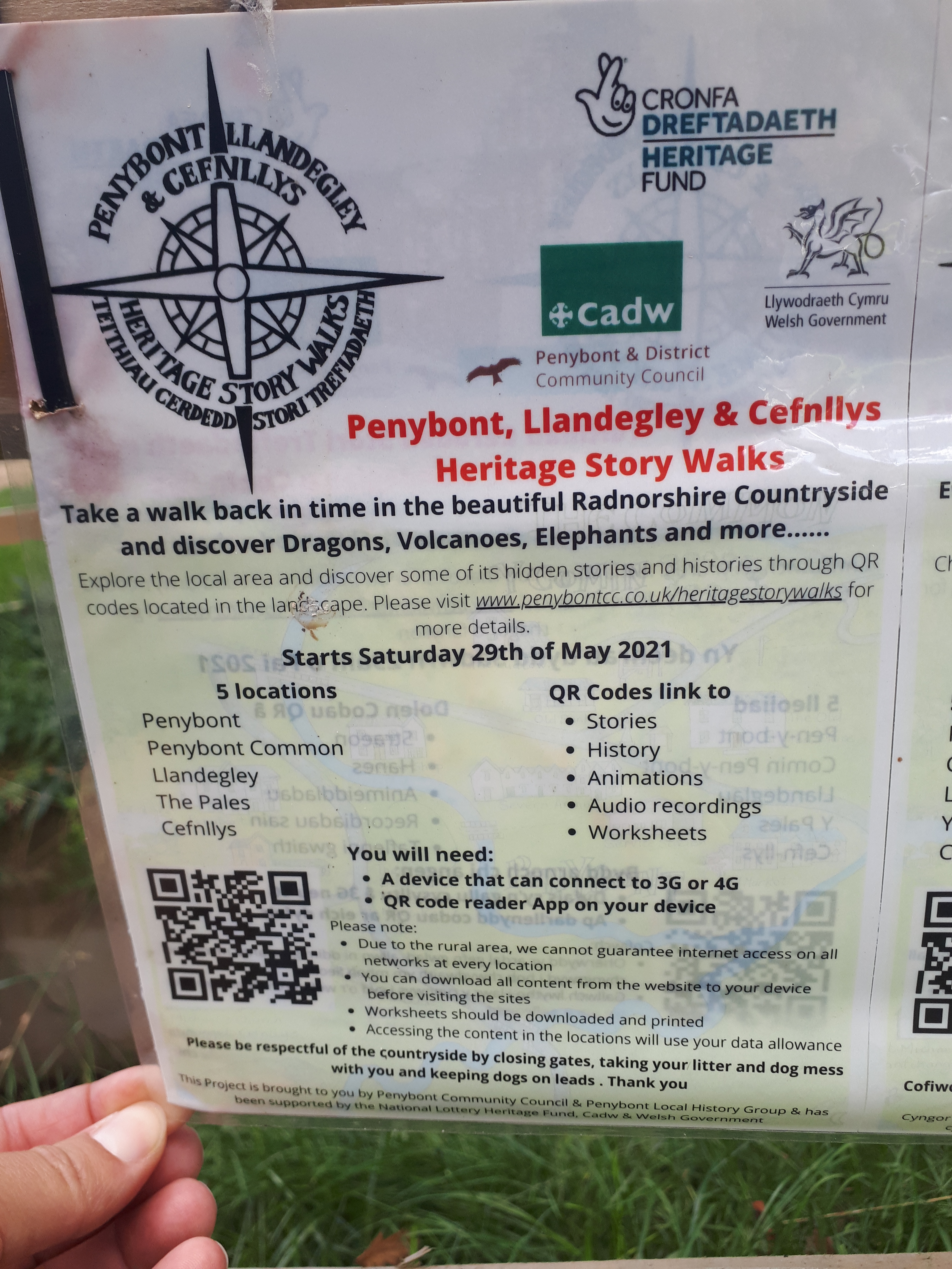 Through the gate is a QR code that links to the Heritage Story Walks.