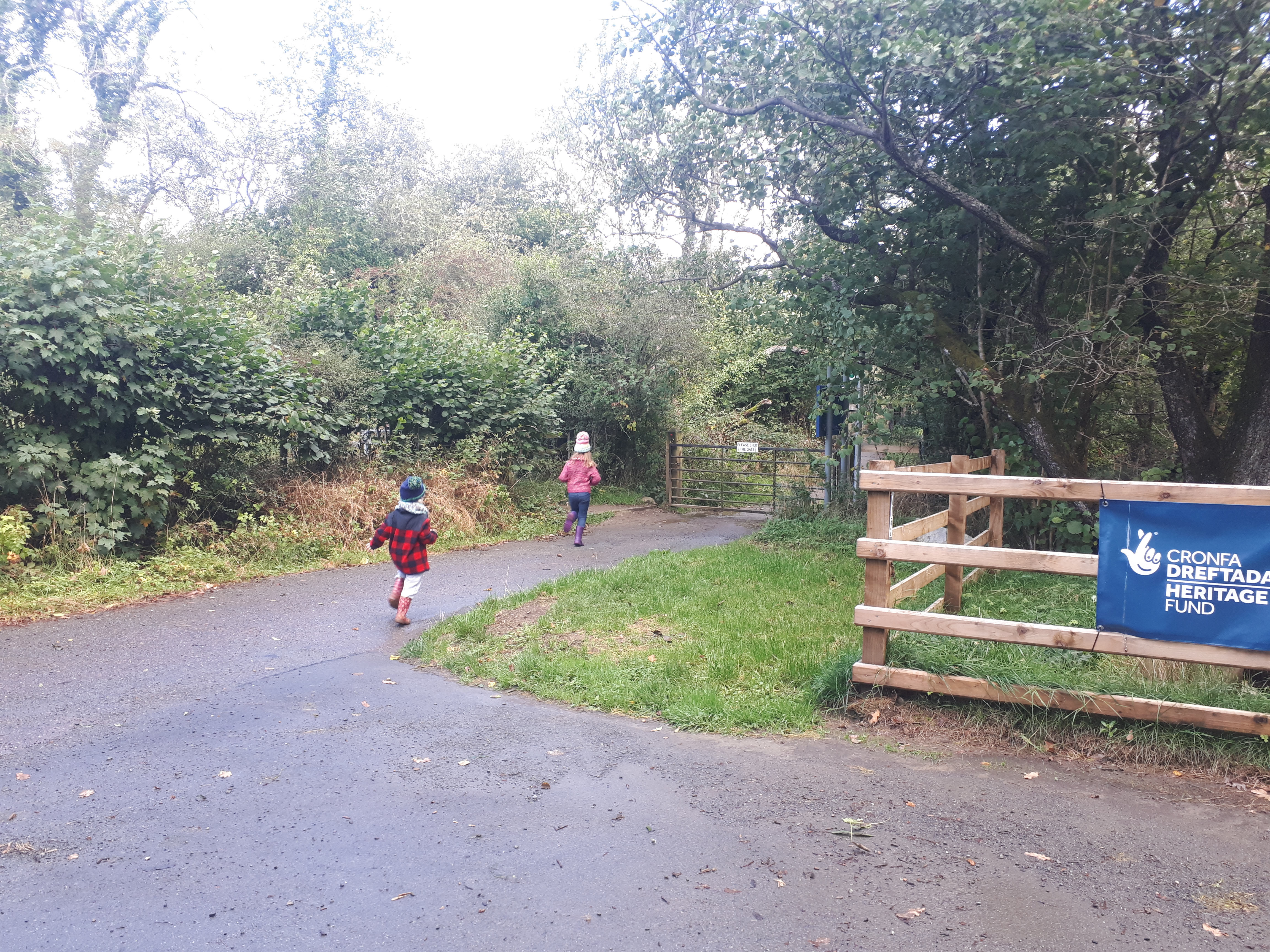From the carpark follow the road left and at the corner turn right and go through the big metal gate.