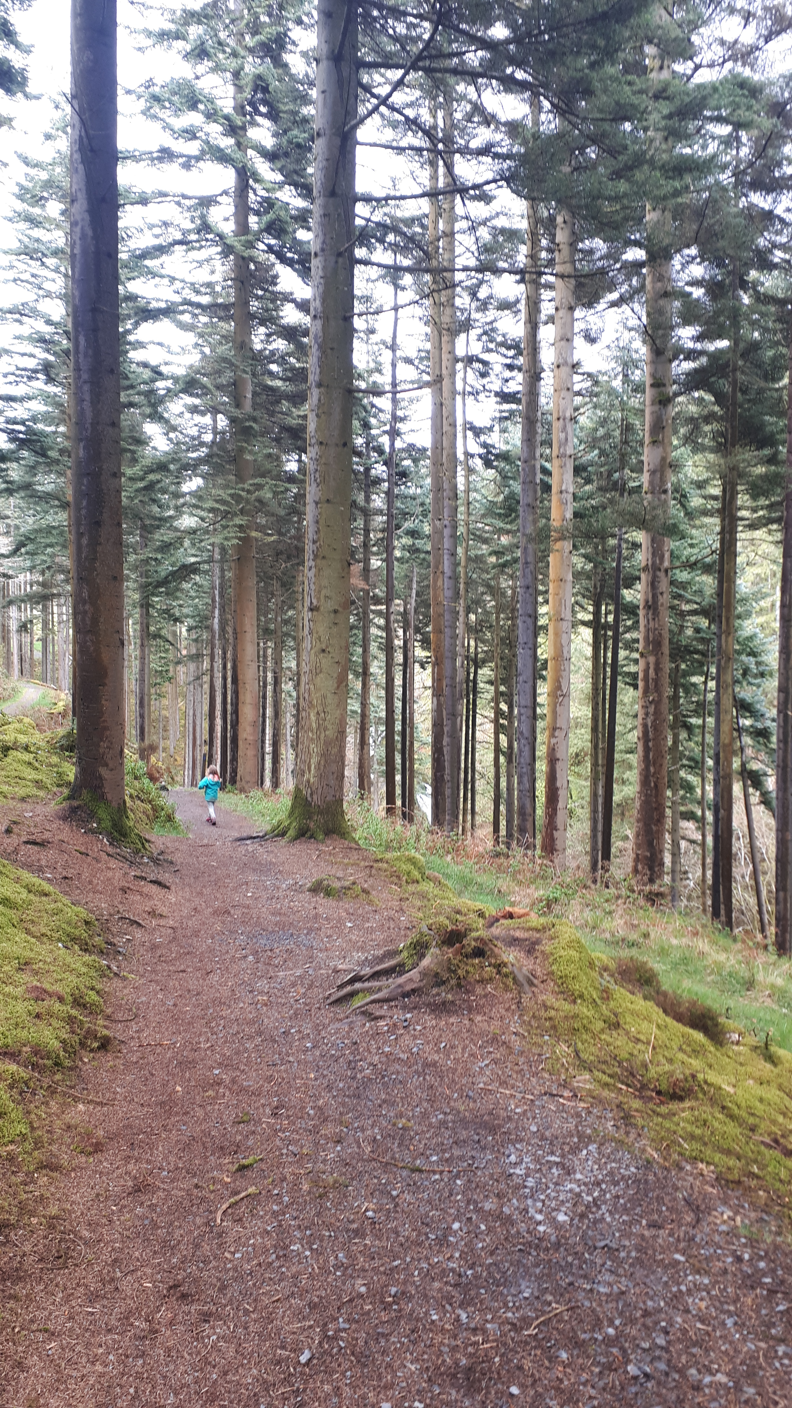 These take you down a stoney track and into the forestry. Other colour routes cross this trail so stick to following the green way markers.