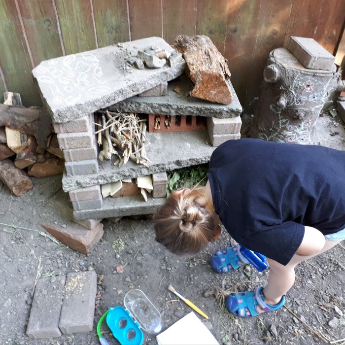 They carefully moved the logs and had a close look for bugs (not the tummy kind).